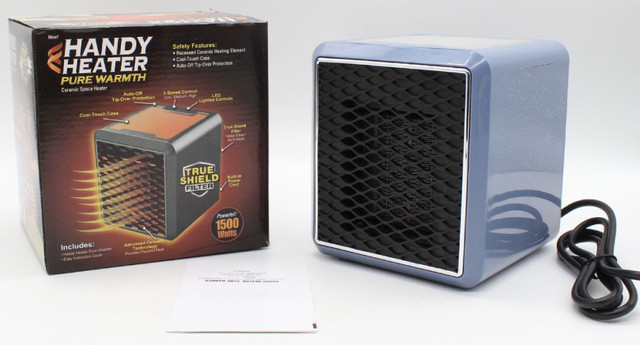 Обігрівач Handy Heater Pure Warmth швидко зігріє невелике приміщення, забезпечуючи комфортне тепло та мобільність для використання у будь-якій кімнаті.
