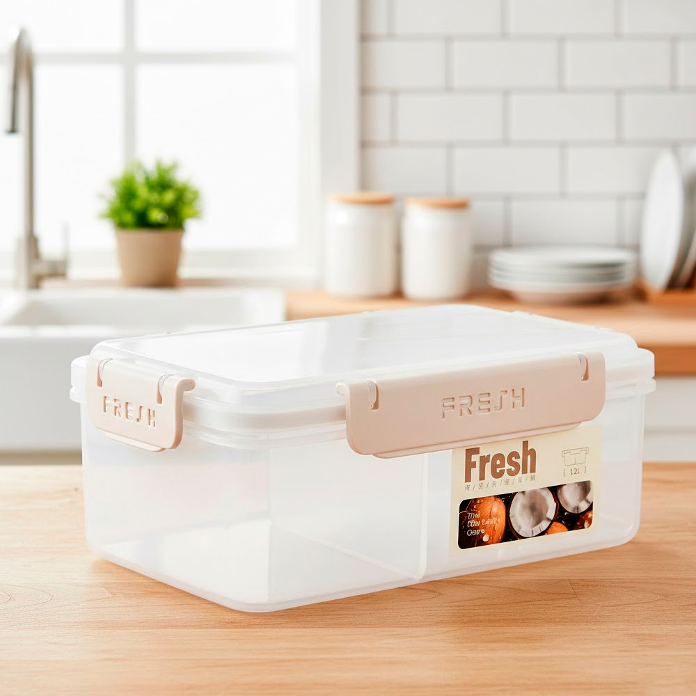 Ланчбокс 1,2л з роздільником та кришкою прямокутний харчовий контейнер Fresh / Контейнер для їжі / Герметичний бокс